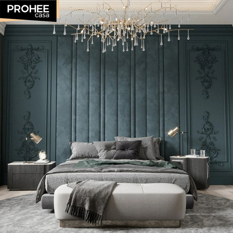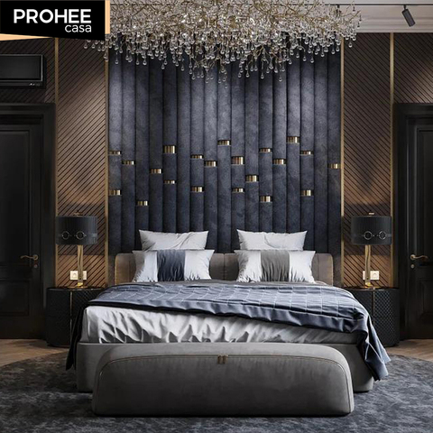 Yatak odası arka panoları için lüks özelleştirilmiş yatak odası dekoru duvar ahşap paneller